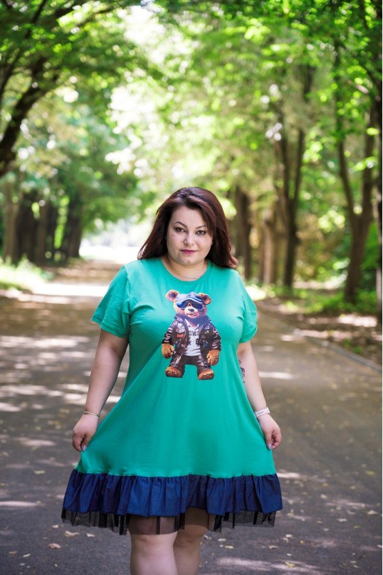 Рокля с апликация на мече в зелено