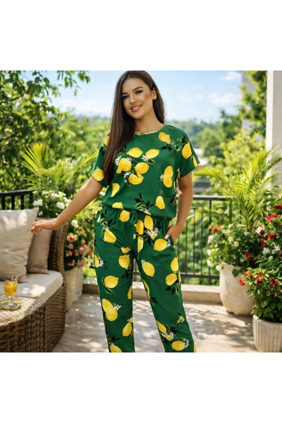 Стилен гащеризон с принт на лимони в зелено