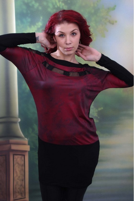 ТУНИКАТА Е ИЗРАБОТЕНА ОТ ВИСКОЗА В КОМБИНАЦИЯ С КОЖЕНО ТРИКО