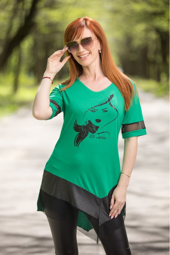 - В долната си част туниката е гарнирана с кожа и мрежа, който допълнително придава стил и красота на модела